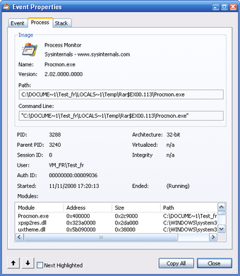 Process Monitor est un utilitaire pour administrateur système conçu par Sysinternals. Il offre une vue exhaustive de l'activité de votre machine: système de fichier, base de registre, processus et threads. Rien ne lui échappe.